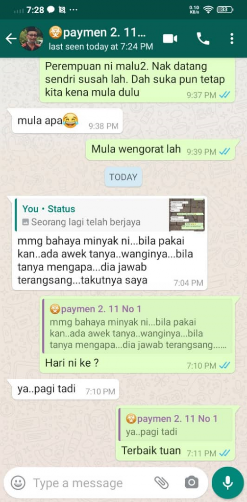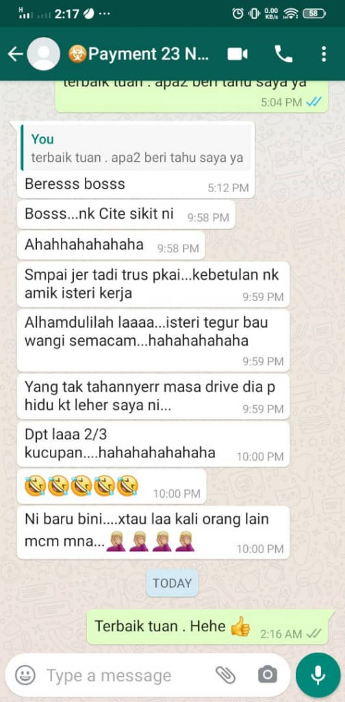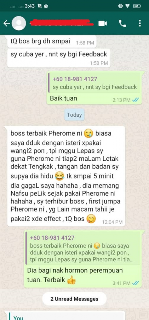 Seperti testimoni pelanggan-pelanggan yang sudah mengalaminya sendiri, yang pasti anda akan dapat pujian tentang bau, kerana bau PHEROME tidak seperti wangian biasa, dan seterusnya anda akan mengalami kesan-kesan yang lebih serius seperti diminati, disanjungi, disukai ramai, rasa yakin, lebih aura, senang berurus niaga, orang disekeliling selesa dengan anda, jika sudah berkahwin, pasangan anda akan lebih ghairah ketika bersama.